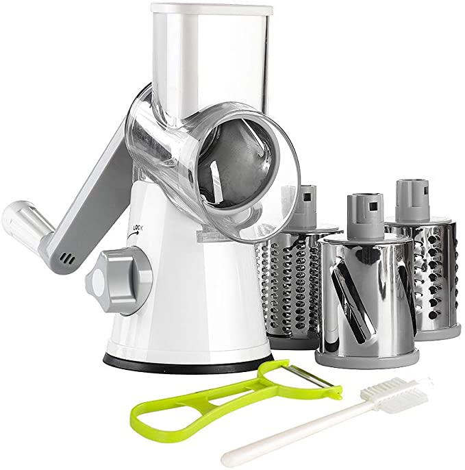 With our cheese shredder grater, you can get food preparation more efficiently with minimum effort. 360 degree blades cuts foods all the time when you crank the handle.Humanity Design Rotary Grater