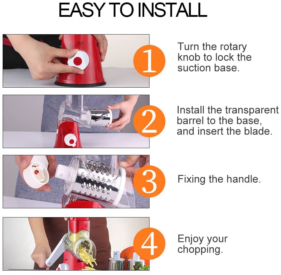 Performs the tasks of multiple kitchen tools in one, this cheese grater takes up a little cupboard and bench space. The food shredder slicer is easy to be disassembles for easy clean. You can just clean it under the running water.
